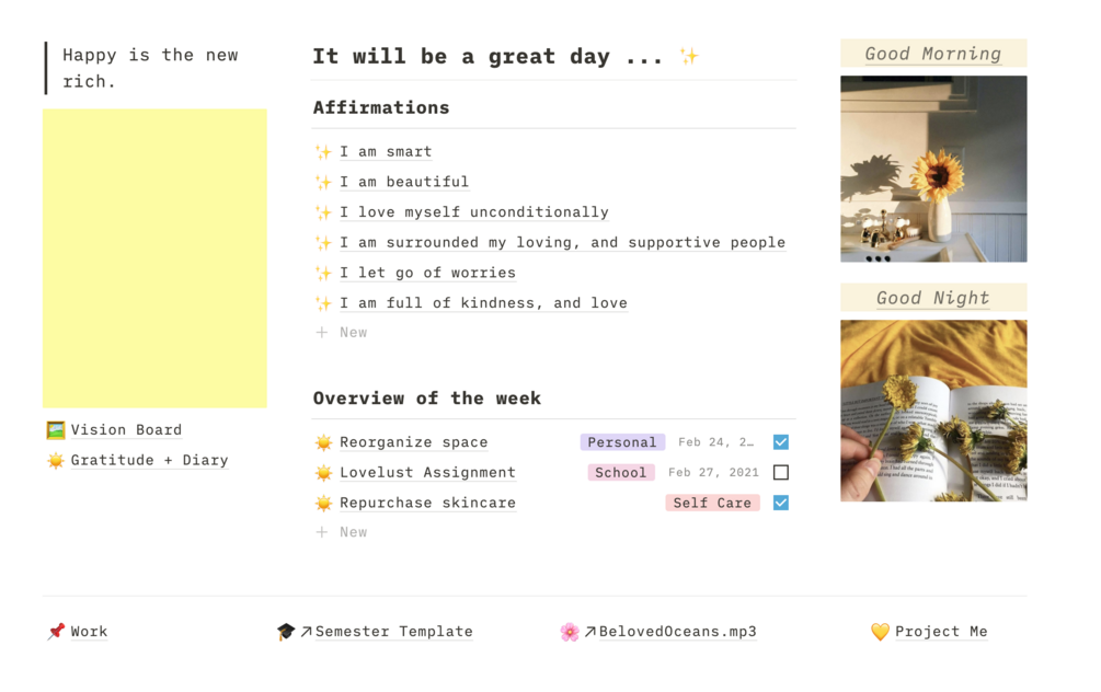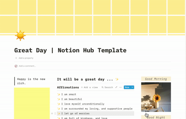 Great Day | Yellow Aesthetic | Notion Hub Template