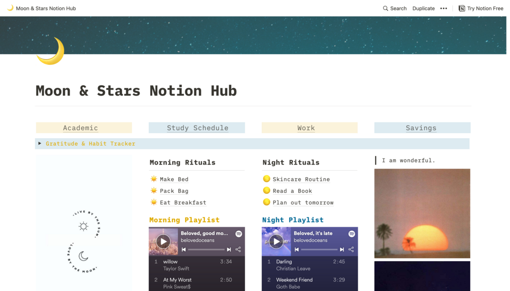 Moon & Stars Notion hub